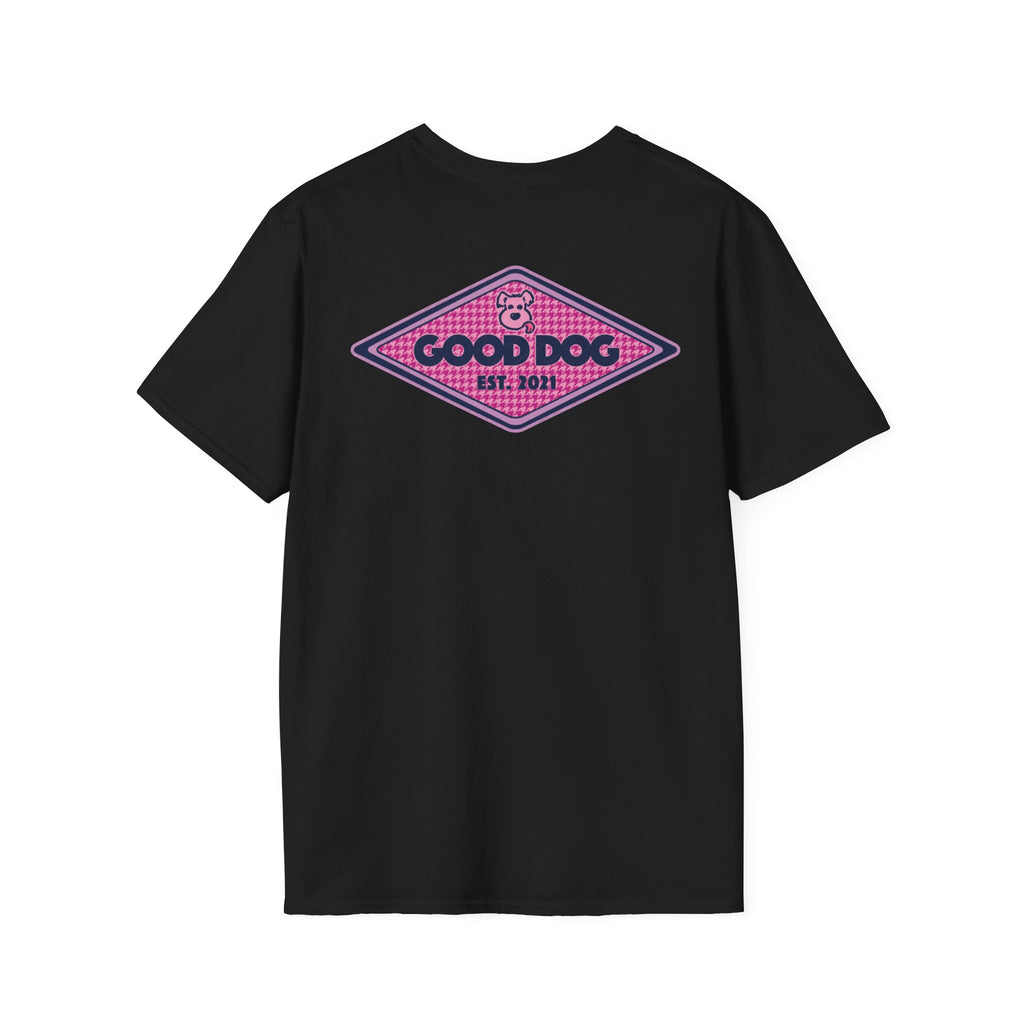 This t-shirt features the Diamond Dog design in a playful bubble gum colored pattern. This unisex soft-style t-shirt puts a new spin on casual comfort. Made from very soft materials, this tee is 100% cotton for solid colors. Heather colors and sports grey include polyester.