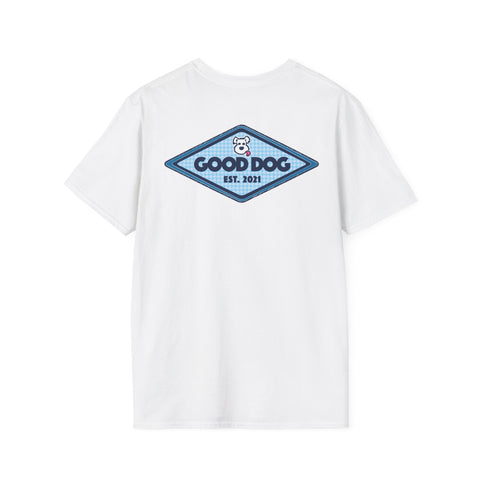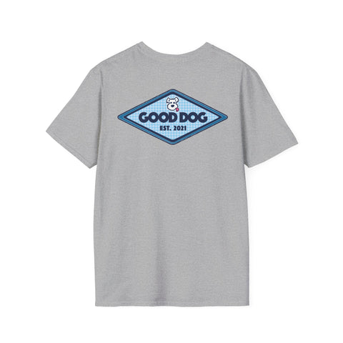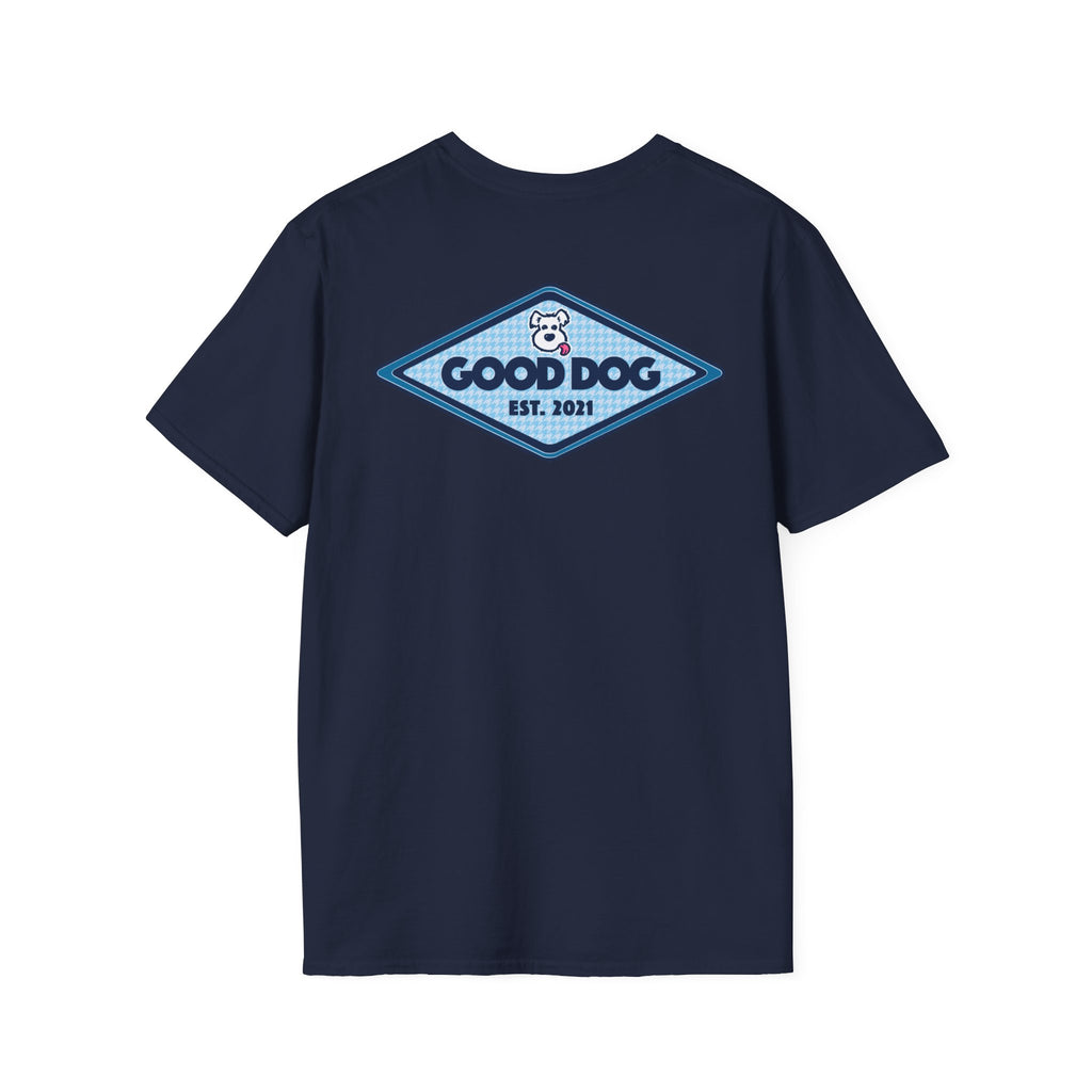 This t-shirt features the Diamond Dog design in a delectable blue pattern. This unisex soft-style t-shirt puts a new spin on casual comfort. Made from very soft materials, this tee is 100% cotton for solid colors. Heather colors and sports grey include polyester.
