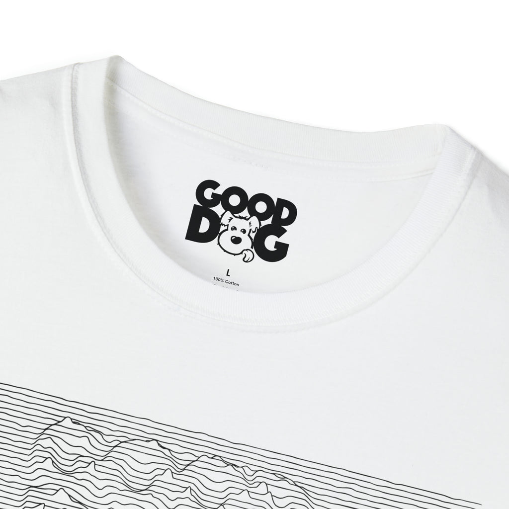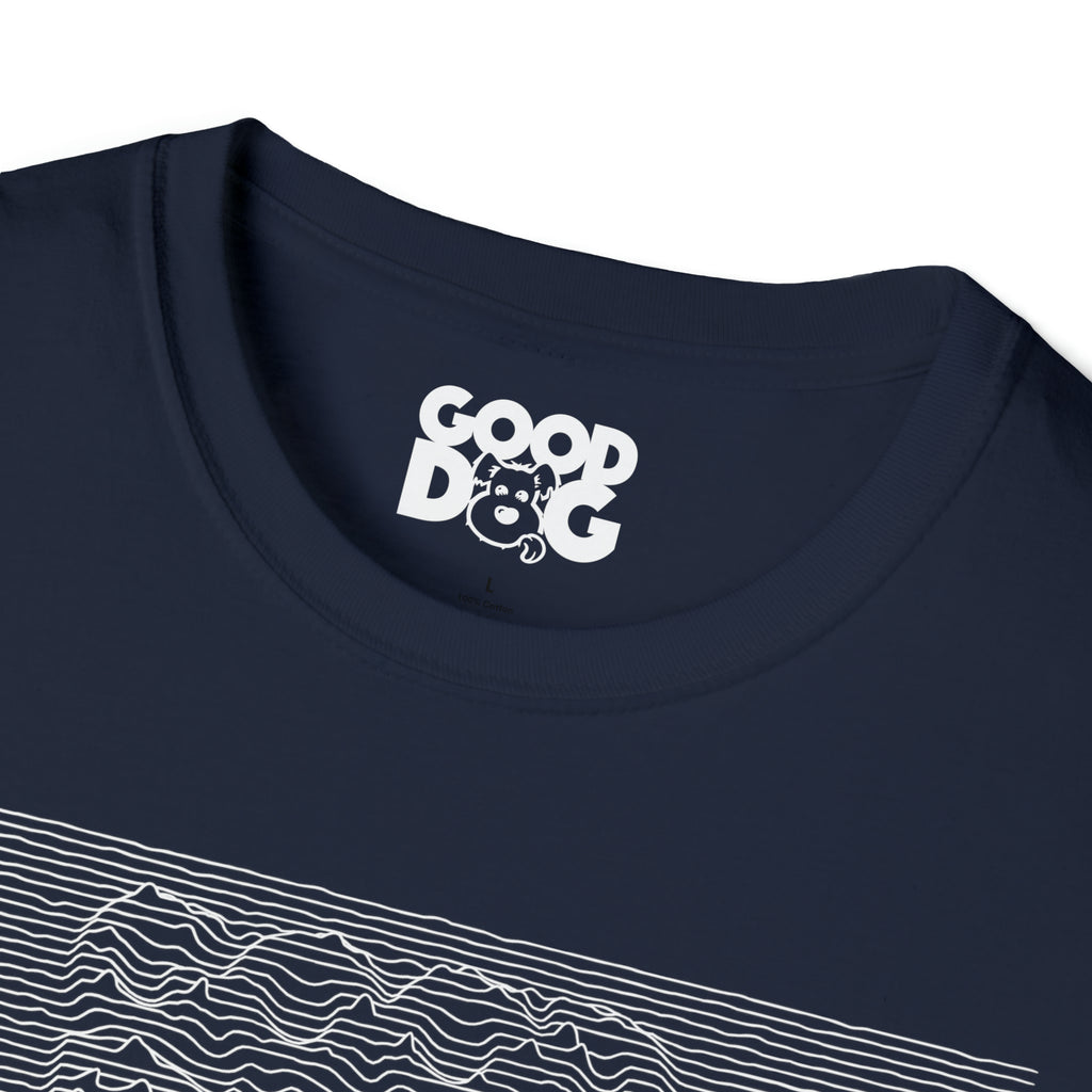Unknown Dog tee, from the Ruff 'n Roll collection, was inspired by the artwork for the new wave rock band Joy Division's seminal debut album Unknown Pleasure.